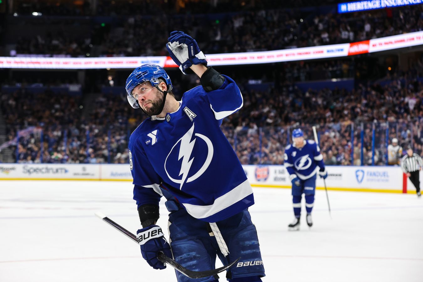 Пресс-служба «Тампа-Бэй Лайтнинг» опубликовала фото российского нападающего Никиты Кучерова, набравшего 1000 очков, с забавной подписью. Россиянин отметился двумя результативными передачами в матче регулярного чемпионата с «Анахайм Дакс» (4:3).