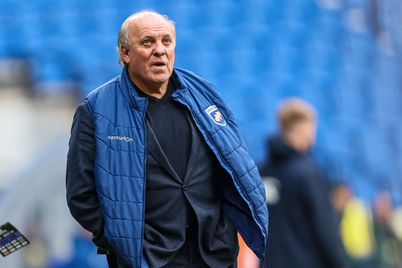 Главный тренер должен быть со скамейкой. Ему делать замены, ему надо чувствовать эти замены, чувствовать игроков. И я не для показухи хожу под дождём без зонта, а потому, что он мне мешает и не нужен во время игры. Так что моё мнение остаётся неизменным. А то, что все смотрят на то, как там ребята на Западе, ну пусть смотрят, вопросов нет. До сегодняшнего момента результат был внизу, а не наверху. Дальше поживем – увидим.