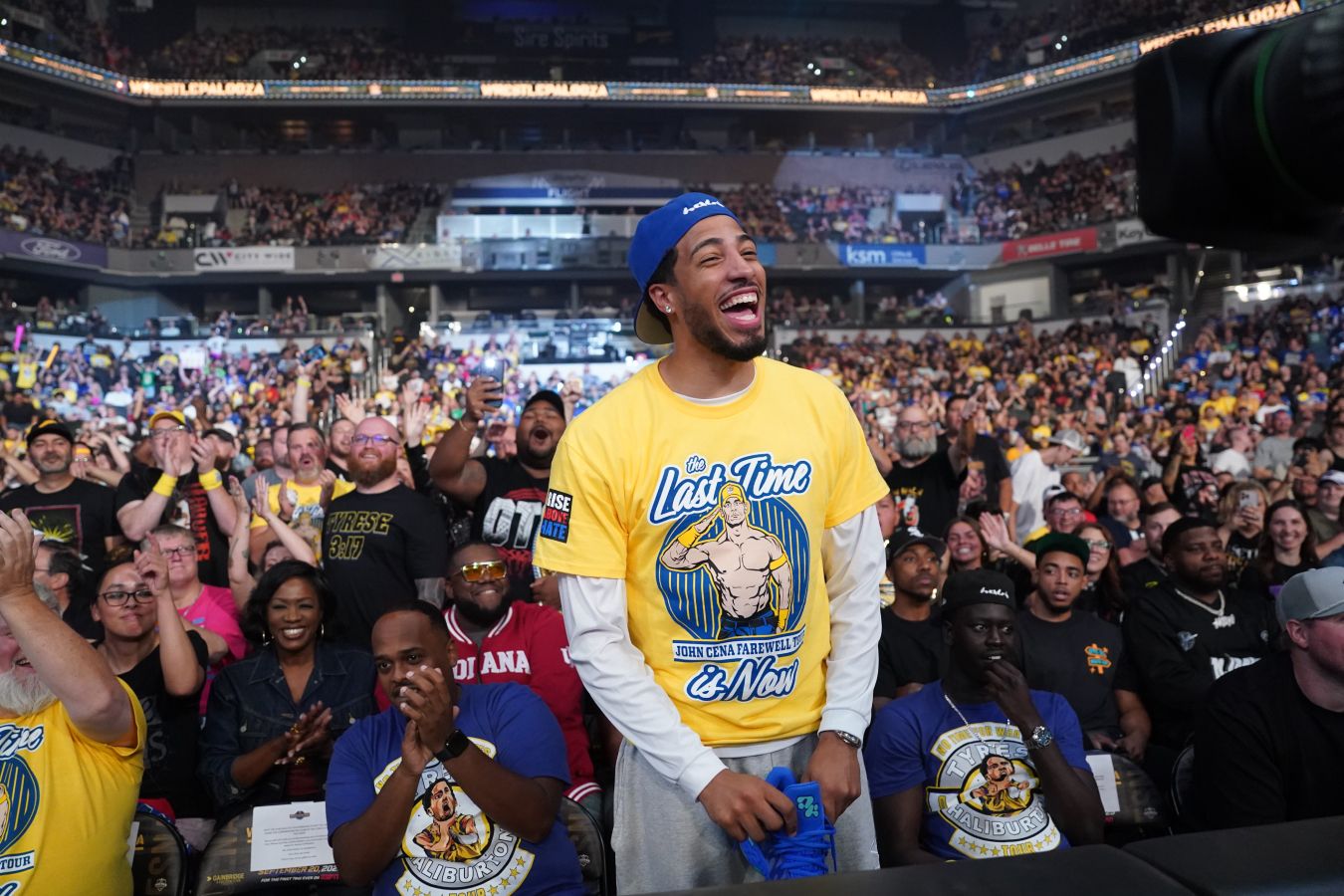 Халибёртона, который восстанавливается после разрыва ахиллова сухожилия, школьники встретили восторженно, а когда баскетболист подошёл на линию штрафных, выкрикивали его имя. Первый штрафной Тайриз смазал, на что дети также активно отреагировали. Затем Халибёртон реализовал четыре кряду броска, что радостно встретили учащиеся, сидящие за его спиной.
