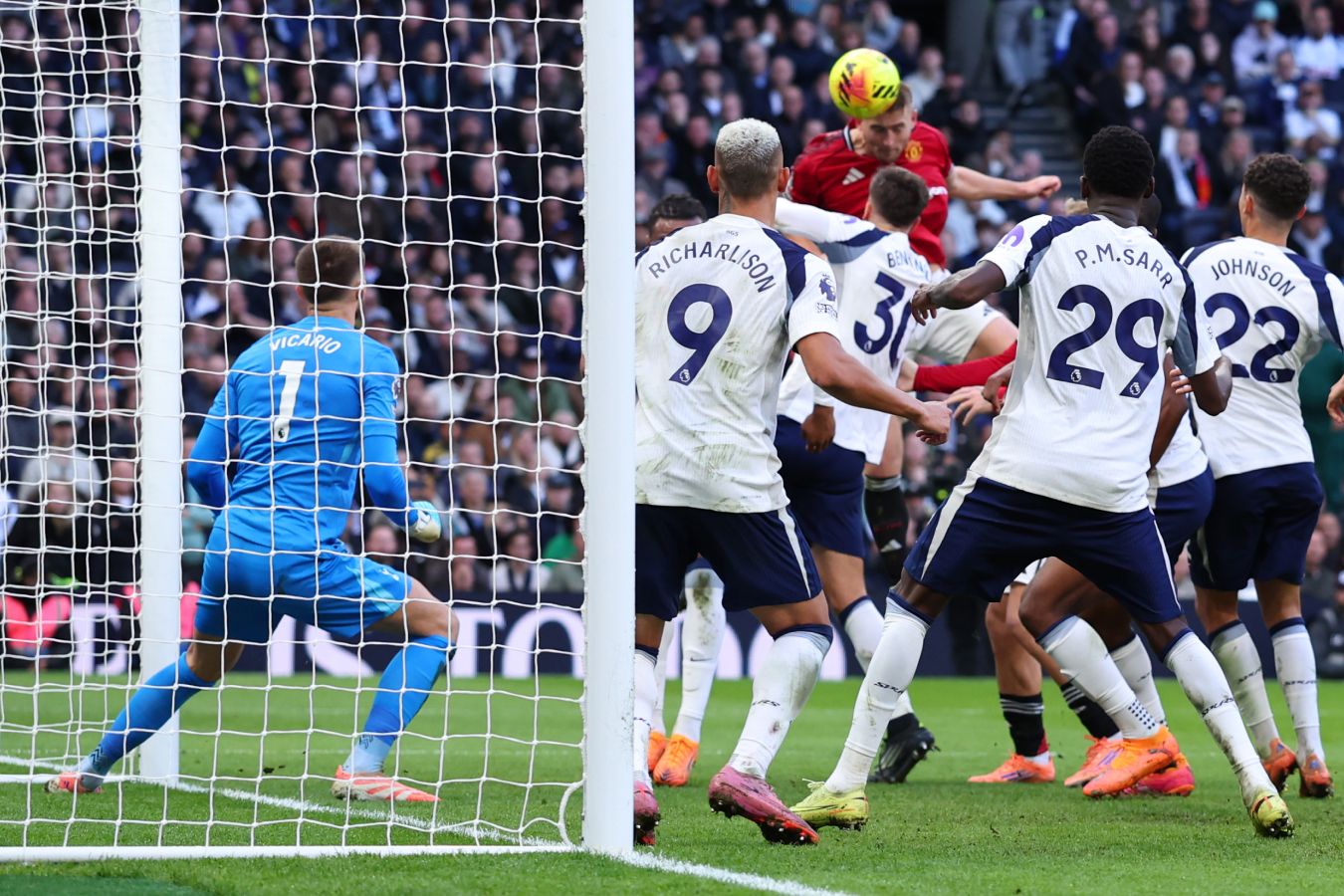 Реакция Аморима последовала незамедлительно. Причём тренер «МЮ», ведя в счёте, выпустил нападающего Шешко вместо защитника Мазрауи. Видимо, марокканец пока не готов играть весь матч. В результате Диалло опустился в пятёрку защитников, а на его месте стал действовать Кунья. Правда сильно лучше для гостей не стало. Вскоре «Тоттенхэм» забил, но из офсайда. В том эпизоде Ришарлисону стоило пасовать на Одобера, который был в ещё более выгодной позиции и в правильном положении. Но всё же «Тоттенхэм» отыгрался, причём сделал это Тель благодаря небольшому рикошету от де Лигта: принял мяч в штрафной и пробил с разворота.