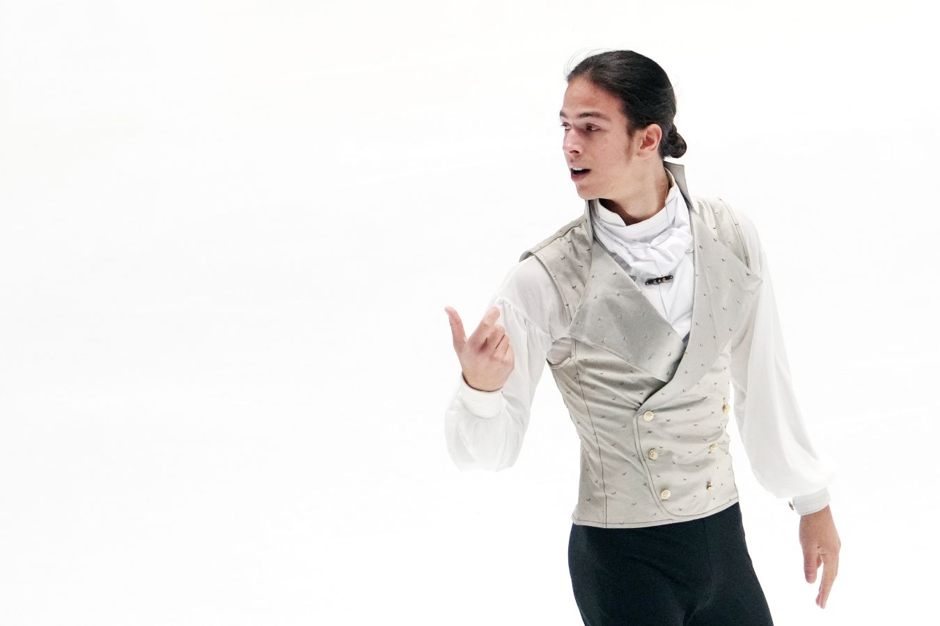 Мы сделали трюк с вытаскиванием платка в конце дорожки. Сначала я катал без костюма, только с платком — все испугались, что это можно посчитать как дедакшен, потому что платок — не часть костюма, можно посчитать как аксессуар. Все начали волноваться, даже мои тренеры переживали, может, выкинуть платок? Но Даниил Маркович очень уверенно настоял на том, что нет, это очень важная часть программы, никакого дедакшена не поставят, всё в порядке. Я ему доверился и тоже по этому поводу не переживал. Платок у меня пришит: в первой половине программы он спрятан под рукав, а потом я его достаю. Получается, как будто с одной стороны — длинный рукав, с другой — платок. Если я его беру в руку — выглядит прямо как в фильме. Мне кажется, это очень важная отсылка, чтобы кто смотрел фильм — они вспомнили и сопоставили».