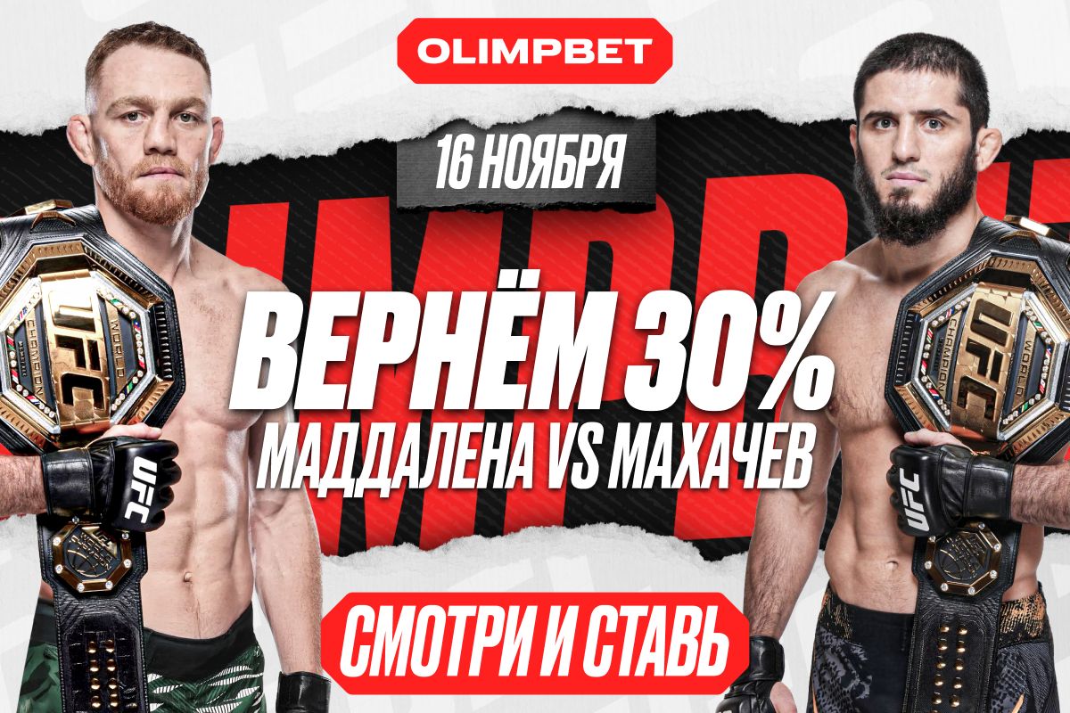Каждый, кто в этот вечер выберет в качестве своей ставки Ислама Махачева, получит еще и гарантированную страховку от OLIMPBET в 30% от общей суммы пари. Все это гоещеворит о том, что сейчас идеальное время поверить в абсолютное величие нашего чемпиона!