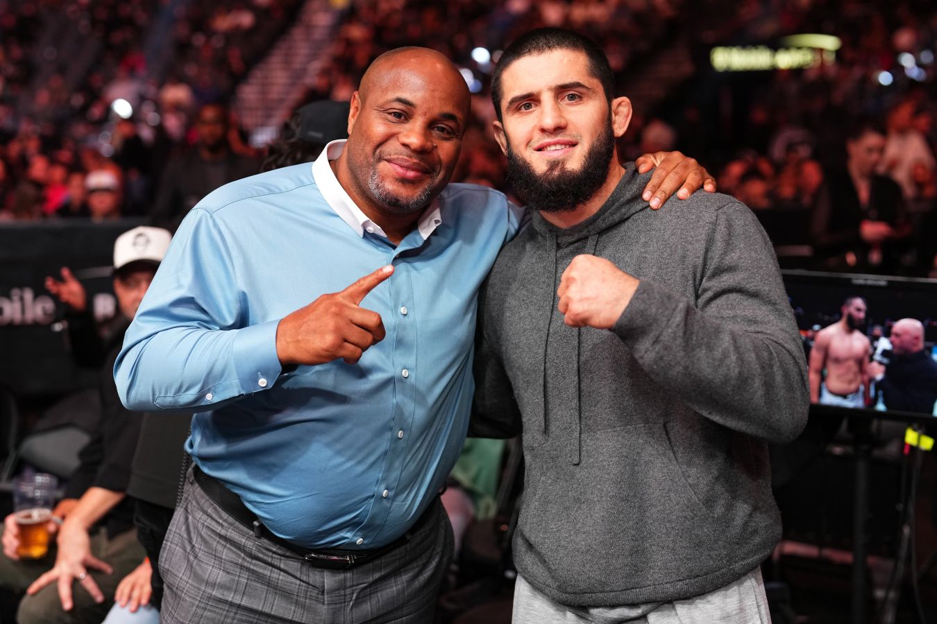 Появилось видео, на котором запечатлено, как бывший чемпион UFC в двух весовых категориях, а ныне член Зала славы американец Даниэль Кормье, принёс сладости Исламу Махачеву после титульного боя с Джеком Делла Маддаленой.