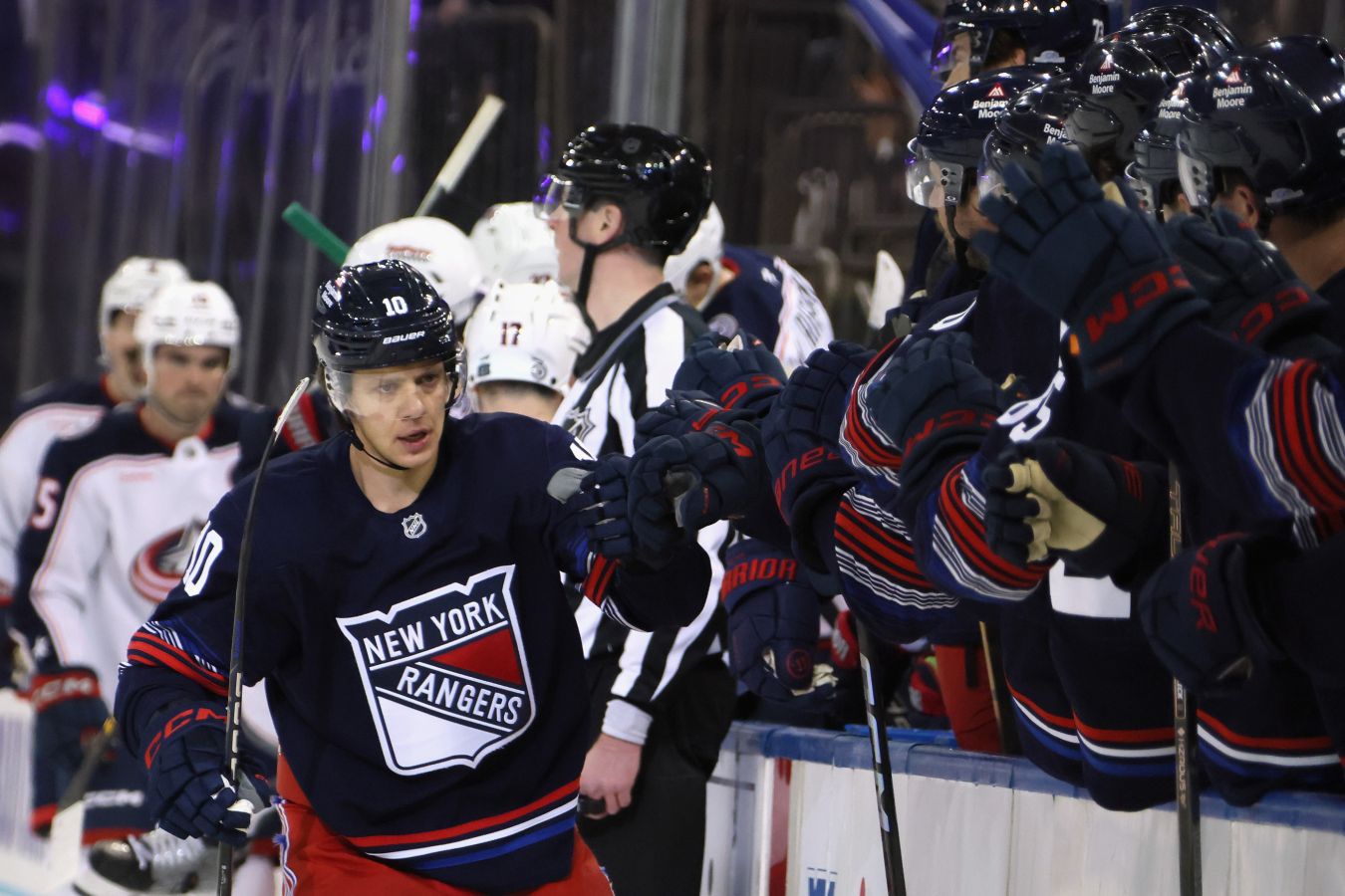 Вратарь «Рейнджерс» Игорь Шестёркин на льду не появился.
