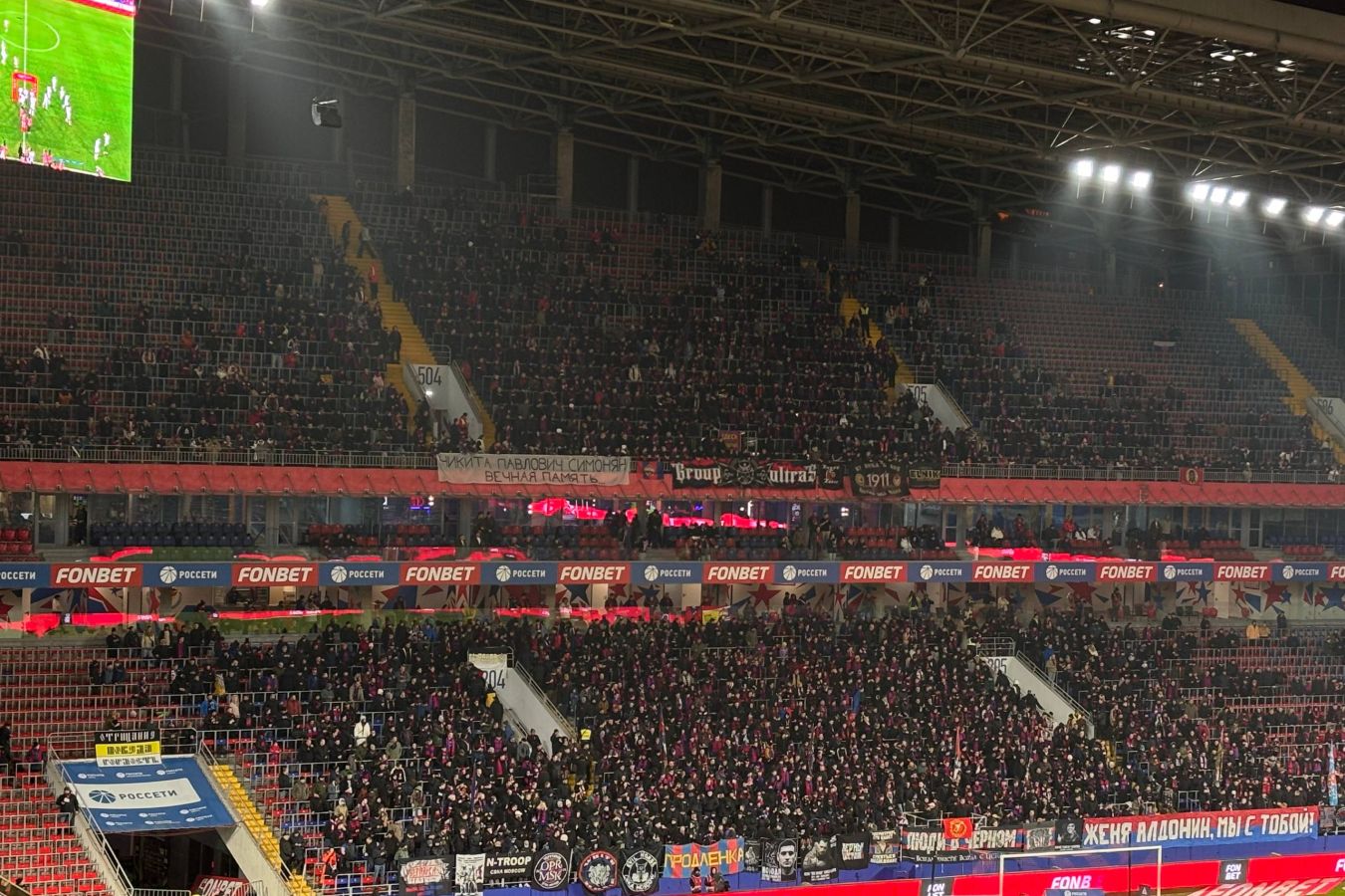 Соответствующий баннер размещён на домашней арене московского клуба на втором матче четвертьфинала Пути РПЛ Кубка России с махачкалинским «Динамо». Об этом сообщает журналист «Чемпионата» Николай Баранов.