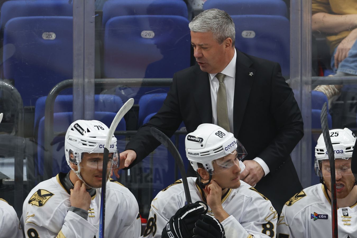 «Очень сильно разочарован командой, работой и отношением к делу. Так нельзя играть дома. Если бы я был игроком, мне было бы стыдно. Четвёртый гол: нам три раза добивают, заталкивают шайбу вместе с вратарём, а у нас два человека стоят и смотрят. Что там стоять смотреть? Нужно жёстко выносить людей. Такой эпизод о многом говорит. Поражения бывают разные, но как мы сегодня проиграли… У меня полное разочарование. Если это настоящие мужики, в дальнейшем будут сражаться и биться, доставать из себя», — цитирует Тамбиева пресс-служба КХЛ.