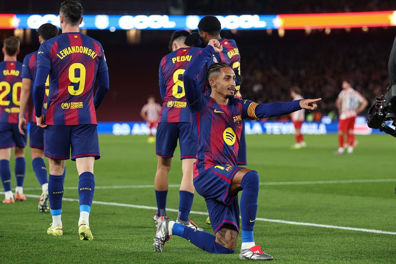 «Барса» ожидаемо оставила контроль мяча за собой. «Атлетико» же продолжил позиционно обороняться и быстро выбрасываться в атаку. Но план Флика работал лучше. Сначала момент для дубля упустил Рафинья, из классной позиции неудачно пробив с левой. Но Дани Ольмо не простил «Атлетико». На 65-й минуте испанец подхватил мяч на границе штрафной гостей, улучшил для себя позицию и покатил точно в угол. Правда, цена гола Ольмо – травма. Дани сразу же покинул поле, державшись за плечо. Очередная потеря для «Барсы».