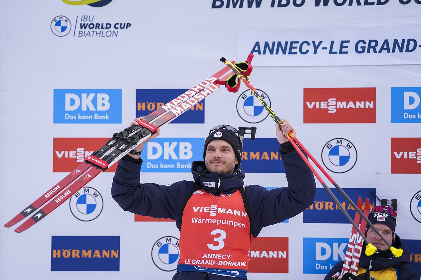 Пятикратный чемпион мира по биатлону из Франции Эмильен Жаклен прокомментировал финиш гонки преследования на этапе КМ-2025/2026 в Анси. Француз шёл позади Эрика Перро и Йоханнеса Дале-Шевдала, но накатил на последних метрах и завоевал серебро.