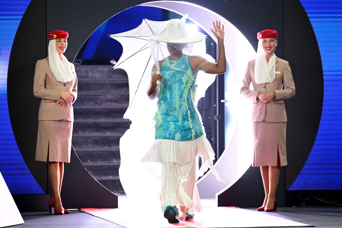 Осака вышла на матч в объёмных штанах, белой шляпе, с которой свисала вуаль, в руках у неё был небольшой зонтик. Эксклюзивную форму для японки производит американская компания Nike. Осака знаменита своими необычными нарядами на турнирах «Большого шлема».