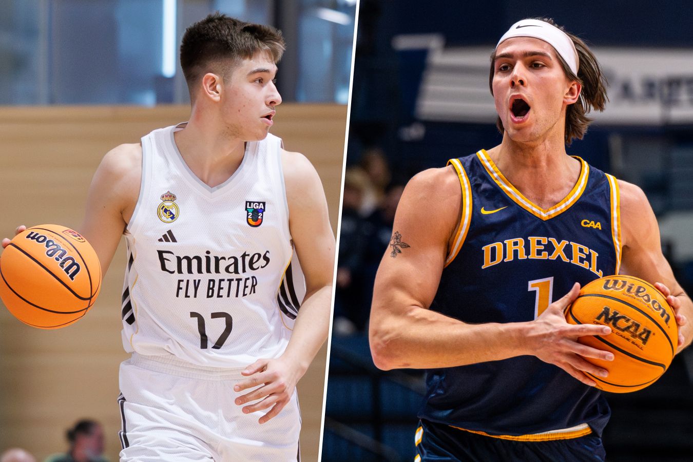 Новой для нас страной в этом обзоре станет Испания, где в молодёжной лиге выступают очень много наших молодых талантов. В системе мадридского «Реала» играют Егор Амосов и Илья Фролов, которые на прошлой неделе уступили «Барселоне» (70:76). Амосов провалил игру в свой день рождения, ни набрав ни одного очка. Правда, он отметился пятью подборами, тремя передачами и двумя блоками. Тем не менее до встречи с каталонским грандом Егор находился в топ-5 лиги по набранным очкам. Сейчас его показатель — 14,6 очка в среднем — девятое место. Фролов же в этом же матче записал на свой счёт девять очков и шесть подборов.