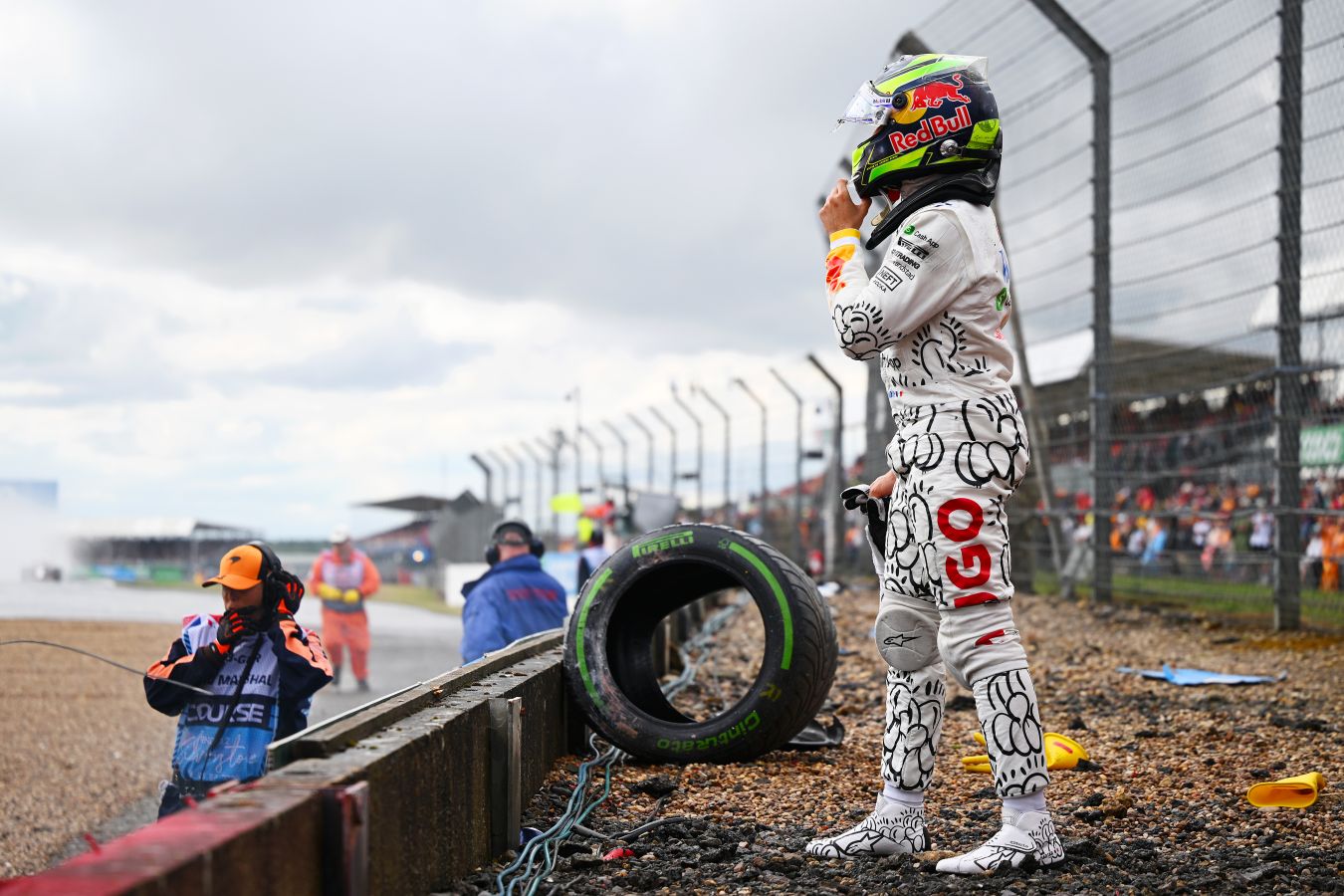 На снимке видны повреждения машины, которую после инцидента накрыли брезентом и эвакуировали с трассы. Инцидент может существенно повлиять на программу тестов команды, так как для восстановления болида потребуются запасные части.
