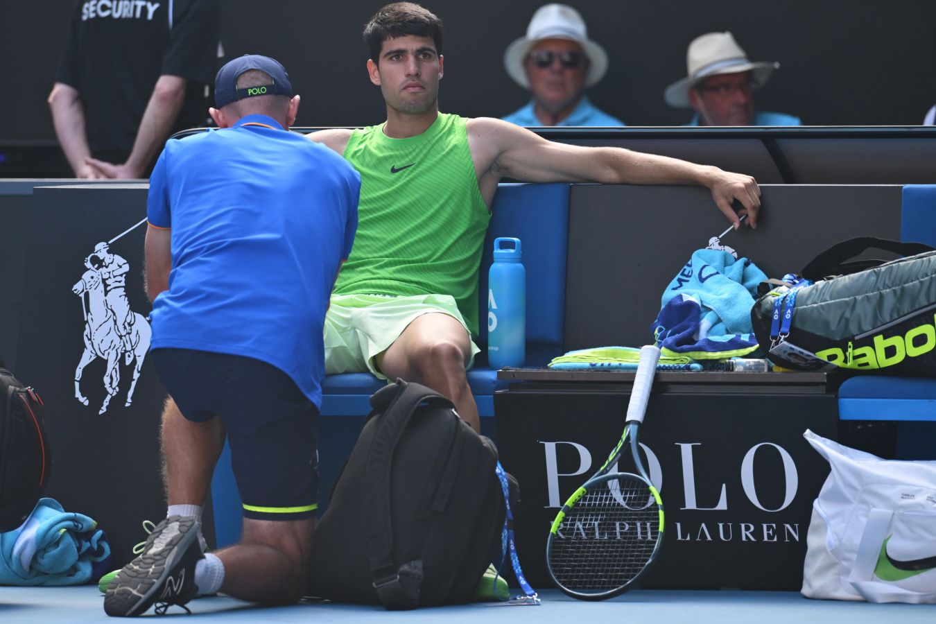 — Матч был очень выматывающим. У меня были судороги до этого, вначале только одна мышца. Я даже сначала не думал, что это судорога, не знал, что именно это, просто пошёл на форхенд и почувствовал что-то в правой приводящей. Поэтому позвал физио. В тот момент остальные мышцы в ногах были в порядке. Ну, не в порядке, но приемлемо. А после я не знал, что происходит, станет ли хуже или нет… Но в тот момент я позвал физио и сказал, что хочу бежать на форхенд и чувствую правую приводящую. Он решил взять медицинский тайм-аут. Потом я взял три напоминания, при смене сторон, и всё.