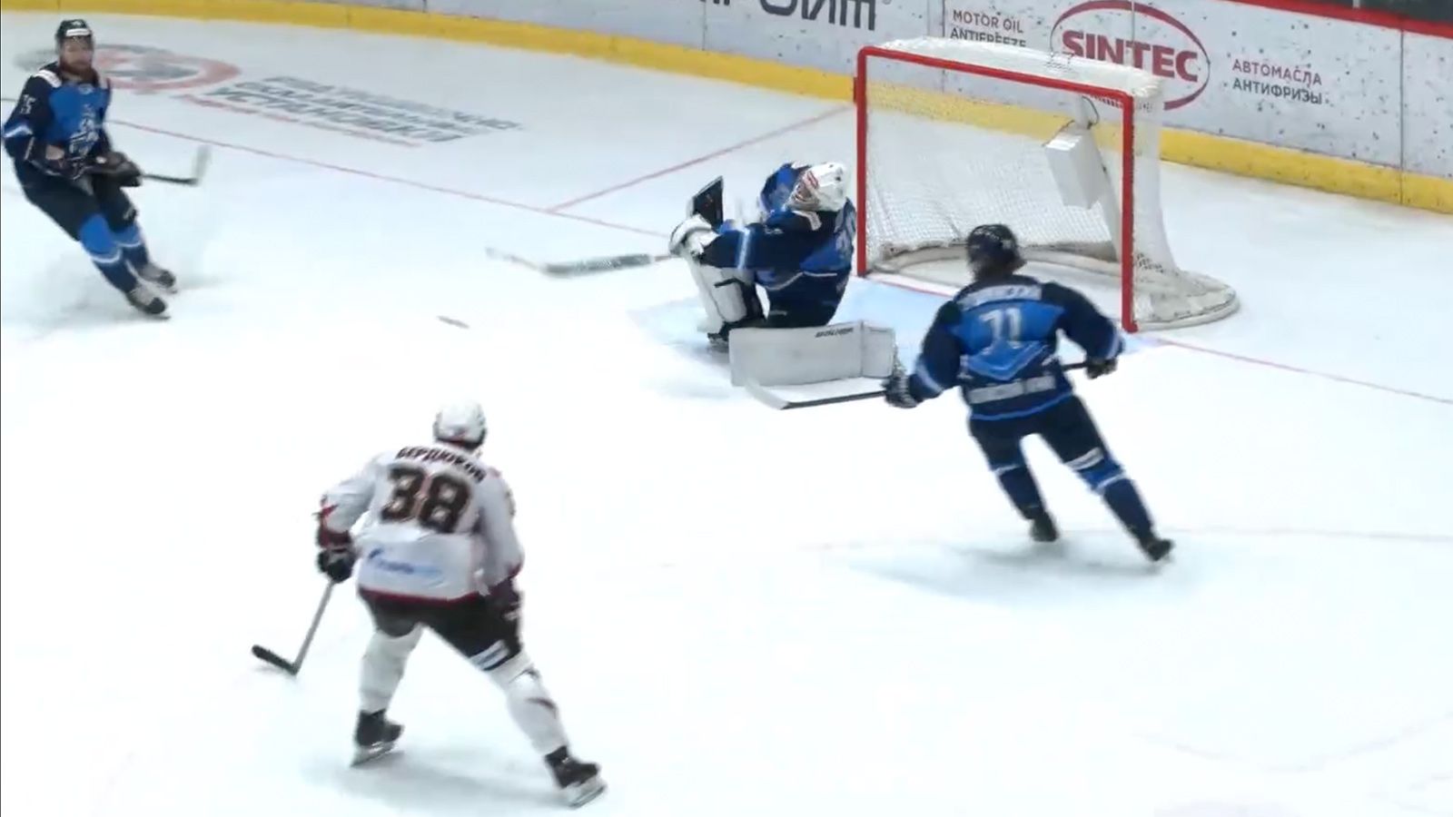 Голкипер поразил ворота команды «Омские крылья» в конце третьего периода, когда у соперника были пустые ворота.