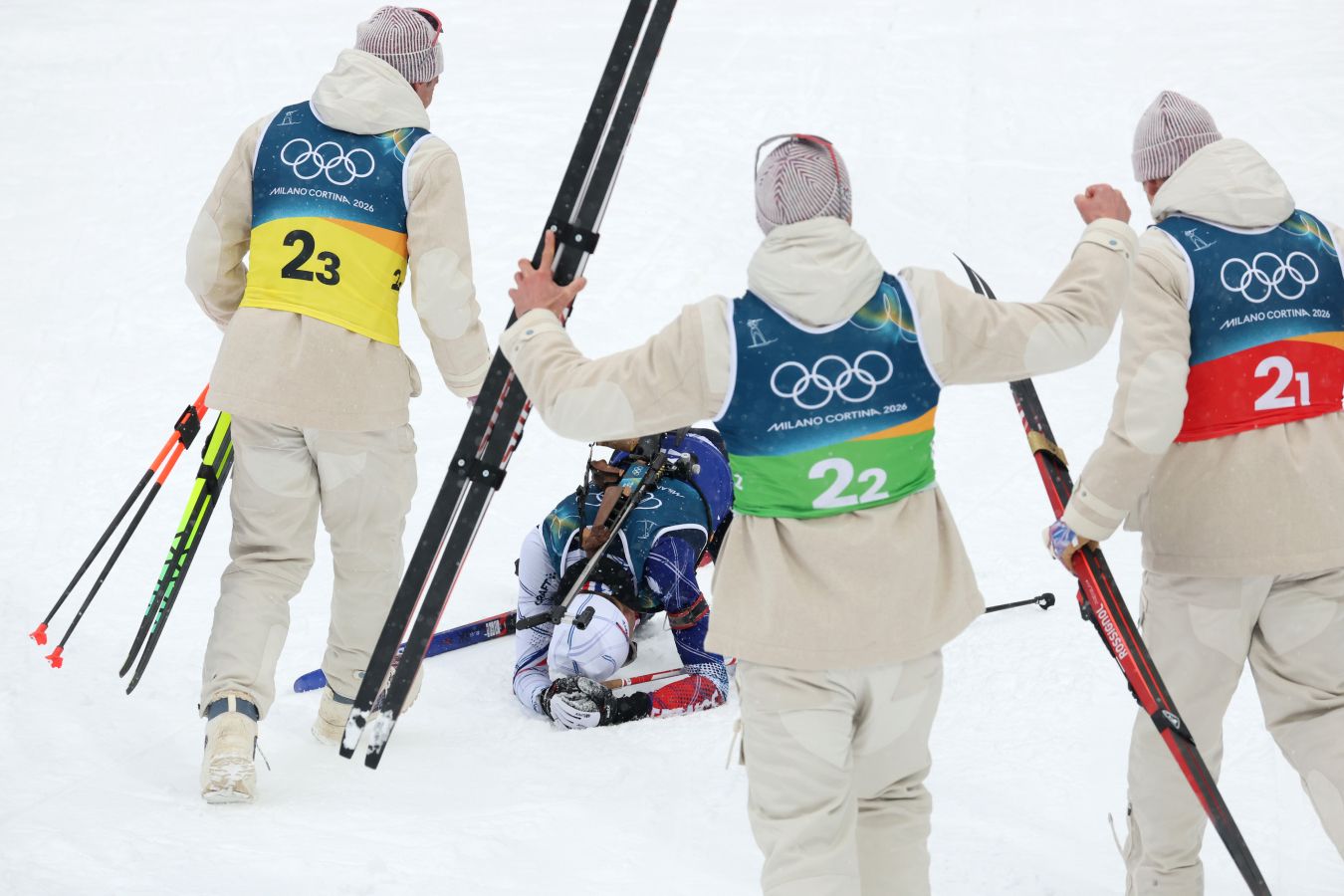 Мужская сборная Франции по биатлону выиграла эстафету на Олимпийских играх – 2026 в Италии. Спортсмены преодолели дистанцию за 1:19.55,2, использовав девять дополнительных патронов, со штрафным кругом на первом этапе (Фабьен Клод провалил стрельбу стоя). Для французов это олимпийское золото стало первым в мужской эстафете в истории страны.