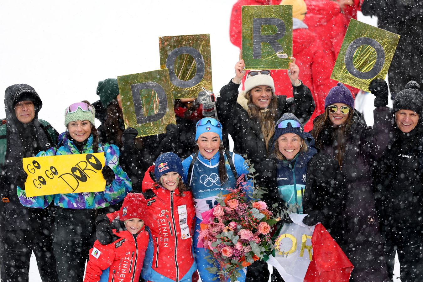 А затем Вирер тепло приветствовала публика. Вообще, в этот день в Антхольце было очень много народу – как на трибунах, так и вдоль трассы. Некоторые болельщики пришли с плакатами, на которых была изображена Доротея, а организаторы вывесили после гонки баннер, на котором на итальянском, немецком и английском языках было написано слово «спасибо».