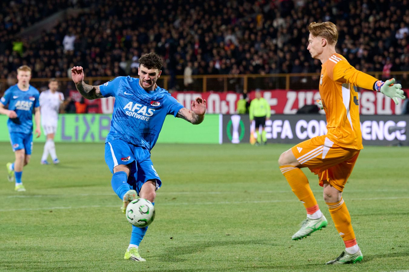 Тем не менее в стартовый состав на первую игру с АЗ хорватский тренер «Ноа» неожиданно поставил Площадного. Фаюлу оказался на скамейке. И команда Перковича без практики в официальных матчах с середины декабря прыгнула выше головы! При помощи российского голкипера. АЗ владел мячом 70% времени и нанёс девять ударов по воротам хозяев, однако так и не пробил россиянина. Алексей, согласно статистике, совершил четыре сейва. Пусть среди них и не было каких-то умопомрачительных, Площадный свою работу сделал. Самый непростой для голкипера удар случился, пожалуй, в компенсированное время. Кроме того, однажды нашего легионера выручила штанга.