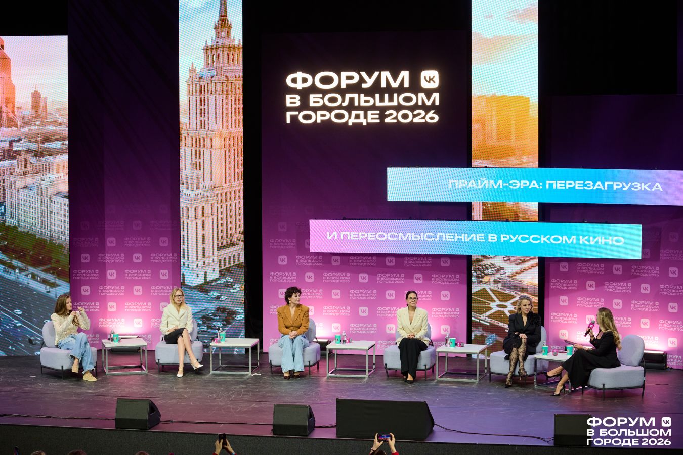 Форум стартовал с беседы об инструментах вовлечения аудитории. Эксперты рассказали, как юмор, хейт и быстрая реакция на тренды помогают продвигать личный бренд. На встрече неожиданно появился Гоша Куценко.