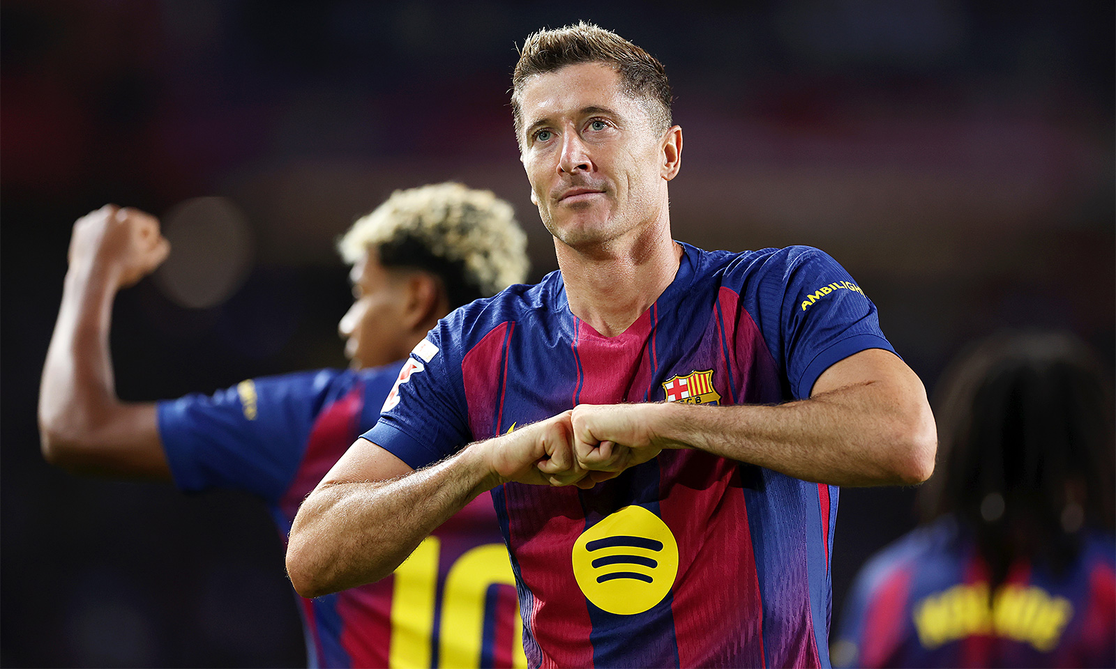Форвард tag«Барселоны»tagРоберт Левандовски успел оформить дубль и был заменен на 66-й минуте.