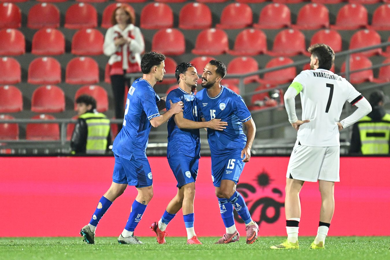 Первый мяч в матче забил нападающий хозяев Хвича Кварацхелия на 36-й минуте. На 54-й минуте форвард оформил дубль. Защитник сборной Израиля Гай Мизрахи сократил отставание на 60-й минуте, а через четыре минуты форвард Омри Гандельман сравнял счёт. В оставшееся время матча команды не отметились результативными действиями.