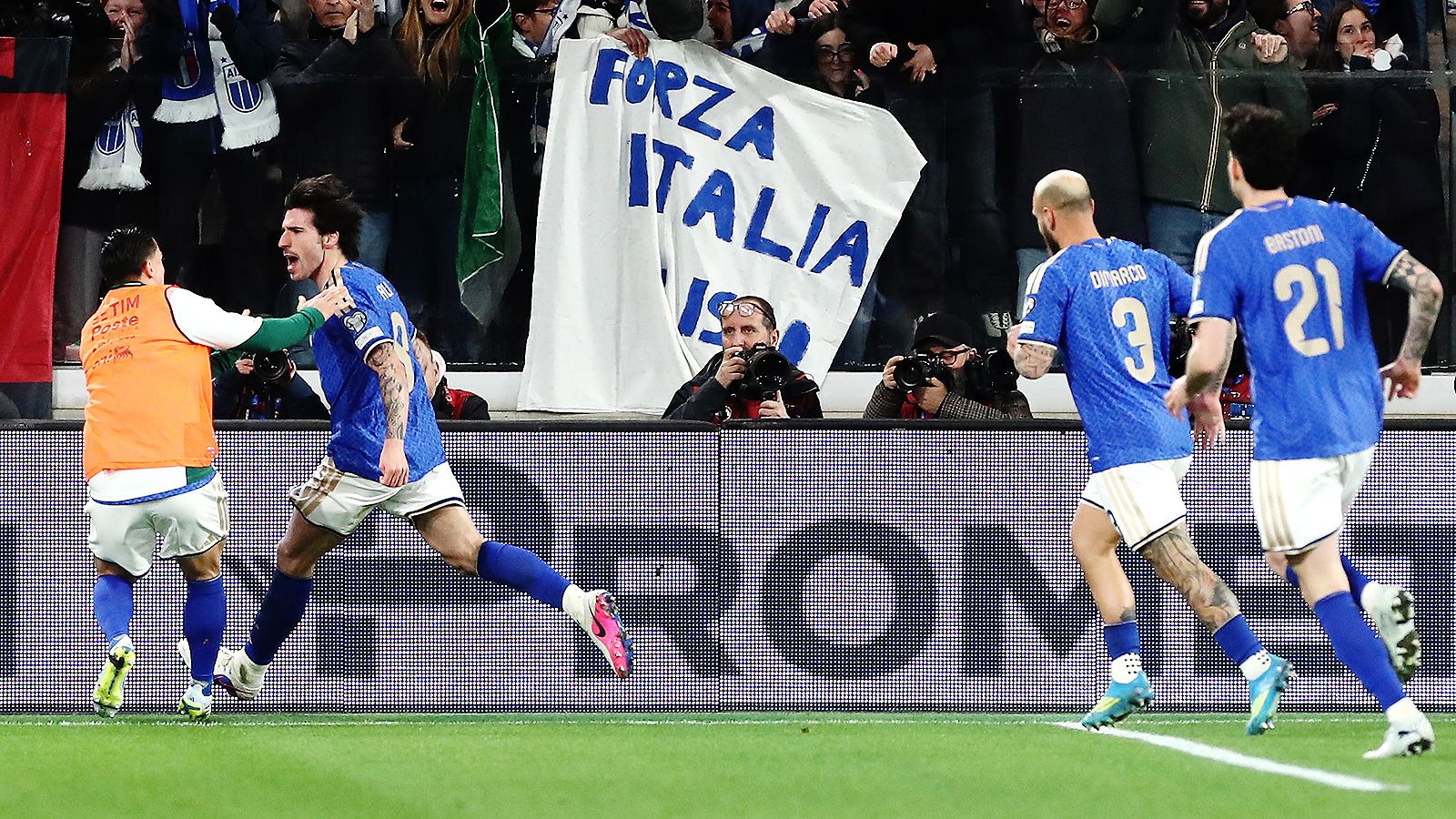 Полузащитник итальянской сборной Сандро Тонали открыл счет в игре на 56-й минуте матча. Второй мяч на свой счет записал Мойзе Кин — 80-я минута.