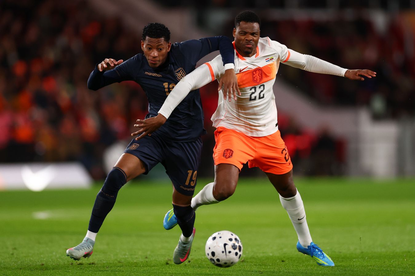 Вильям Пачо на третьей минуте отличился автоголом и вывел нидерландцев вперёд. На 12-й минуте у европейской команды красную карточку получил Дензел Думфрис. Эннер Валенсия на 24-й минуте реализовал пенальти и сравнял счёт.
