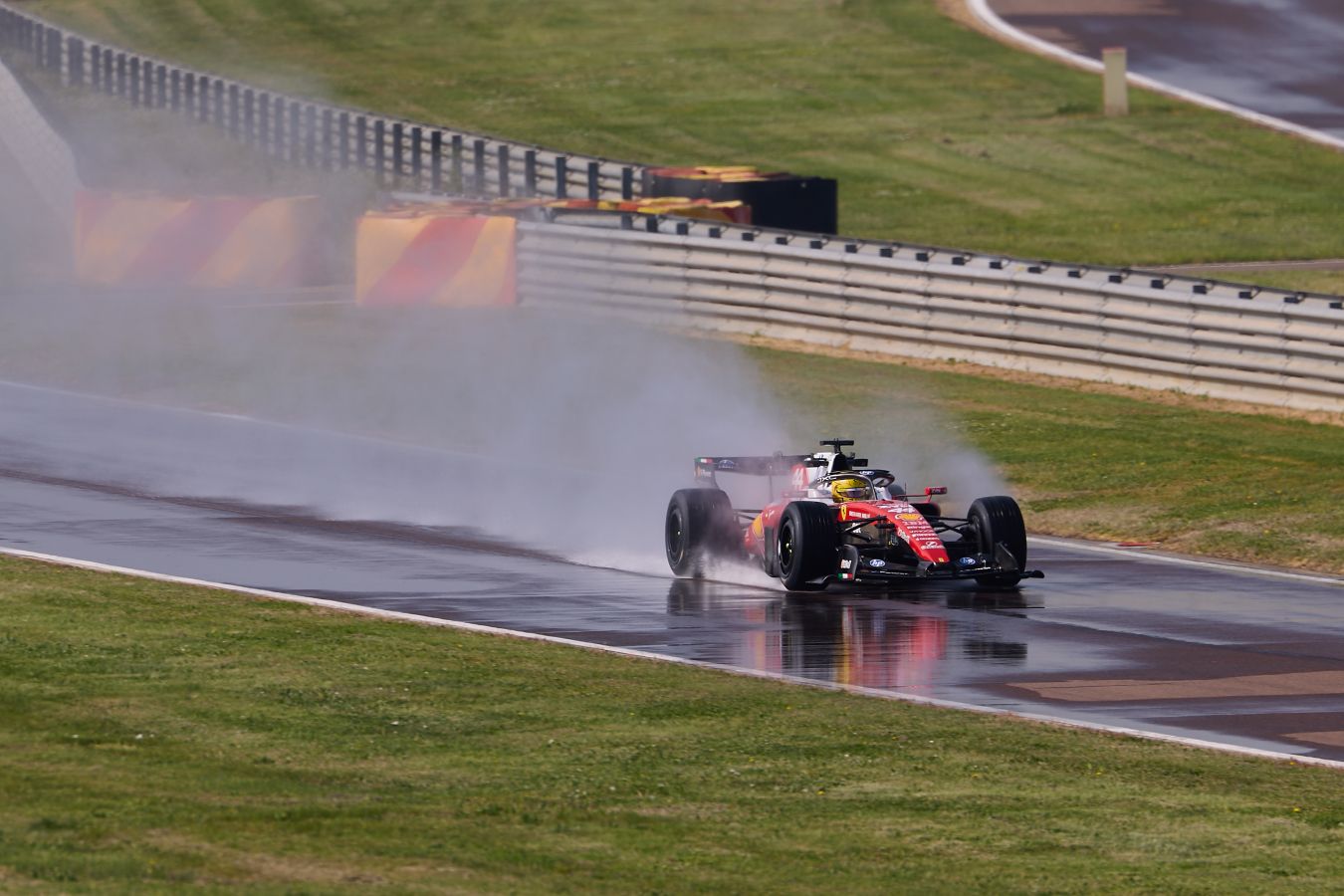 «Феррари» проводит первый из двух дней тестов «Пирелли» на трассе в Фьорано. За рулём SF-26 пилот команды Льюис Хэмилтон, который тестирует решения для дождевых шин. Несмотря на солнечную погоду, асфальт домашней трассы «Скудерии» был искусственно увлажнён.