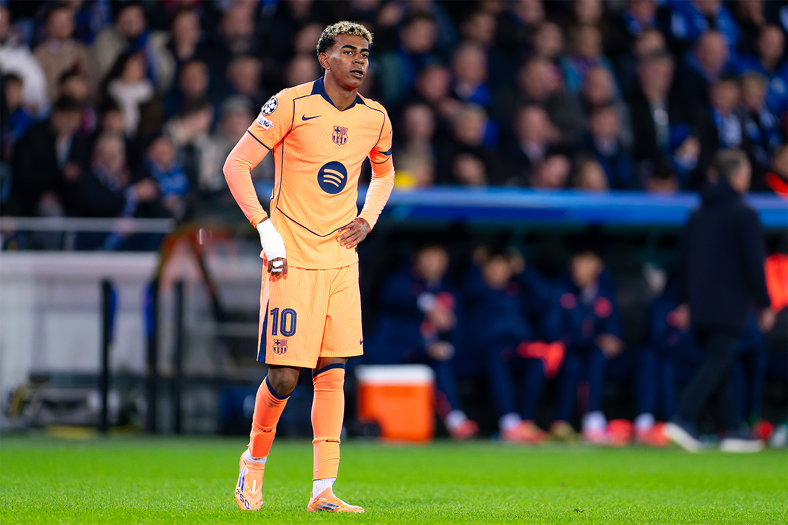 Нападающий tag«Барселоны»tagЛамин Ямаль досрочно покинул тренировку команды.