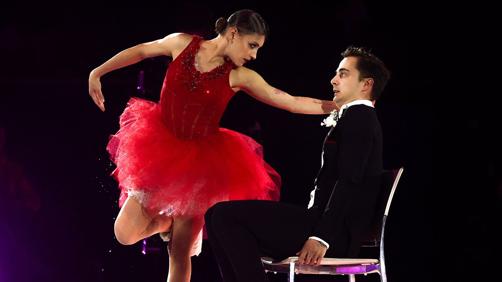 В какой-то степени в этом номере я сыграла себя. Но в какой-то степени. (Смеется). По элементам у нас, конечно, должны быть и подкрут, и выброс, но из-за сложной подготовки пришлось в последний момент отказаться. Рады, что сделали поддержку, новую для нашей пары — классно, что это получилось.