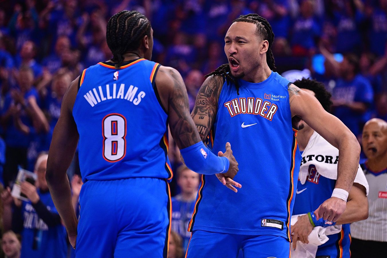 Хоть Гилджес-Александер и стал самым результативным во встрече с 25 очками, четырьмя подборами и семью передачами, но Шей сегодня прилично мазал с игры, реализовав лишь 27,7% бросков. Главная звезда «Тандер» компенсировал это 15 точными штрафными. Великолепный матч провёл Уильямс, на счету которого 22 очка, семь подборов и шесть передач. Джейлен был полезен на каждом участке паркета. Холмгрен остановился на 16 очках, семи подборах, двух перехватах и двух блок-шотах. Букер набрал 23 очка и шесть подборов Брукс — 18 очков и семь подборов, Грин — 17 очков и пять подборов. Но у каждого из них были проблемы с реализацией.