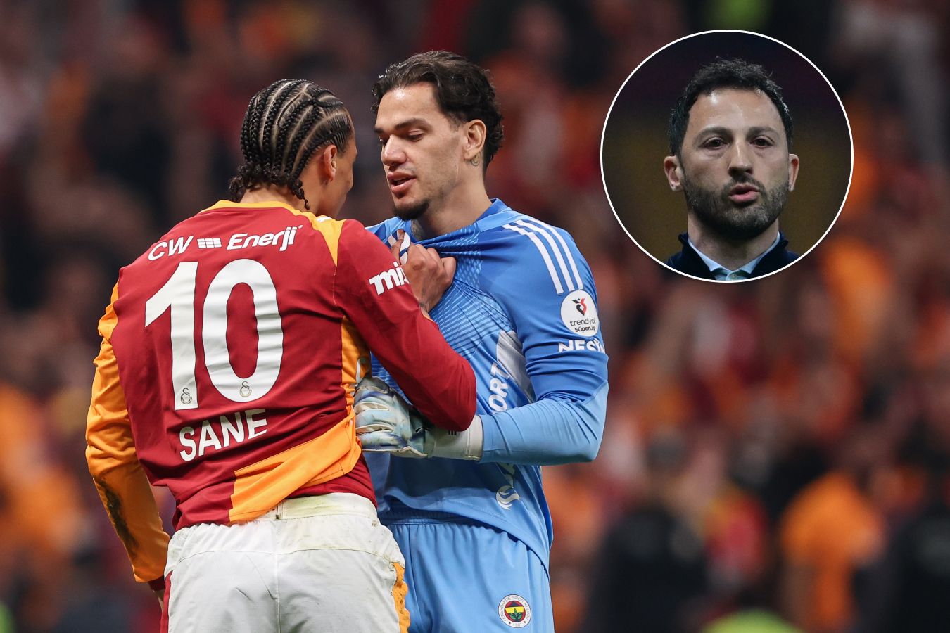 А вот когда Лерой Зане упал в штрафной площади «Фенербахче», судья не назначил пенальти. Его окружила половина состава «Галатасарая» — требовали объясниться. На повторе видно, что Зане рухнул после контакта в ногах с Доржелесом Нене. Видимо, судьи посчитали, что этого оказалось недостаточно для назначения пенальти. Арчи Браун и Эдерсон поговорили с арбитром на повышенных тонах — оба игрока «Фенера» схватили по жёлтой карточке.